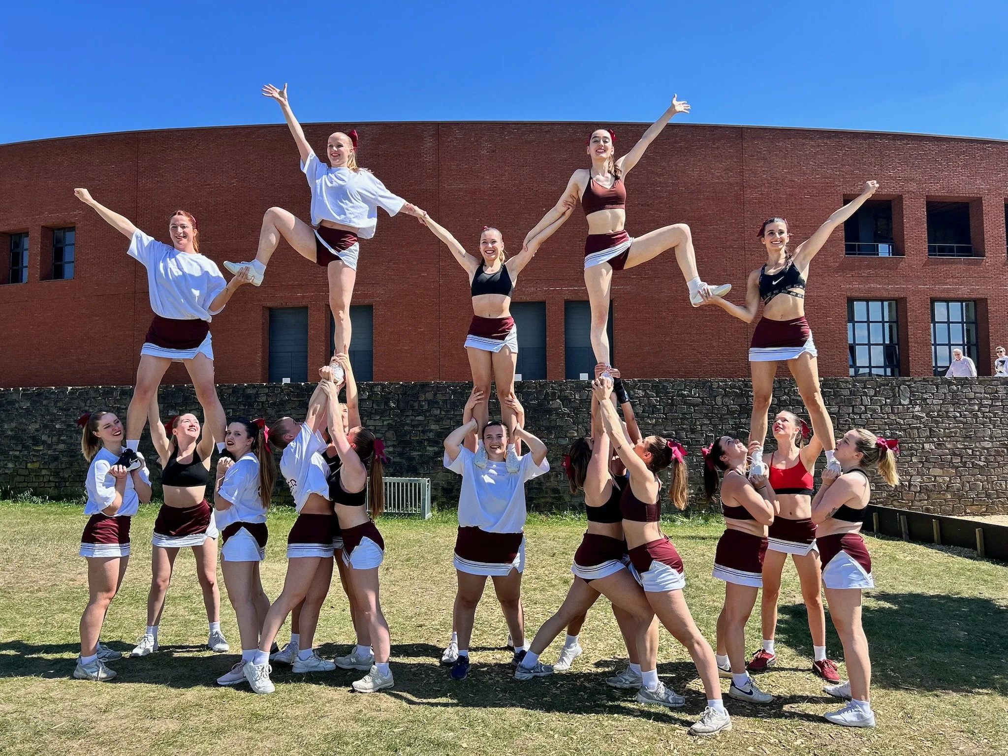 Liever gewoon onze UBCHEER aan het werk zien? Op 1 maart 2026 organiseren we de eerste editie van “UB Open” in samenwerking met de Belgische Cheerleading Federatie, een competitie met als doel meer podiumkansen te geven voor deze sport waarin pomdance, stunts en cheerleading centraal staan. Meer info vind je op.